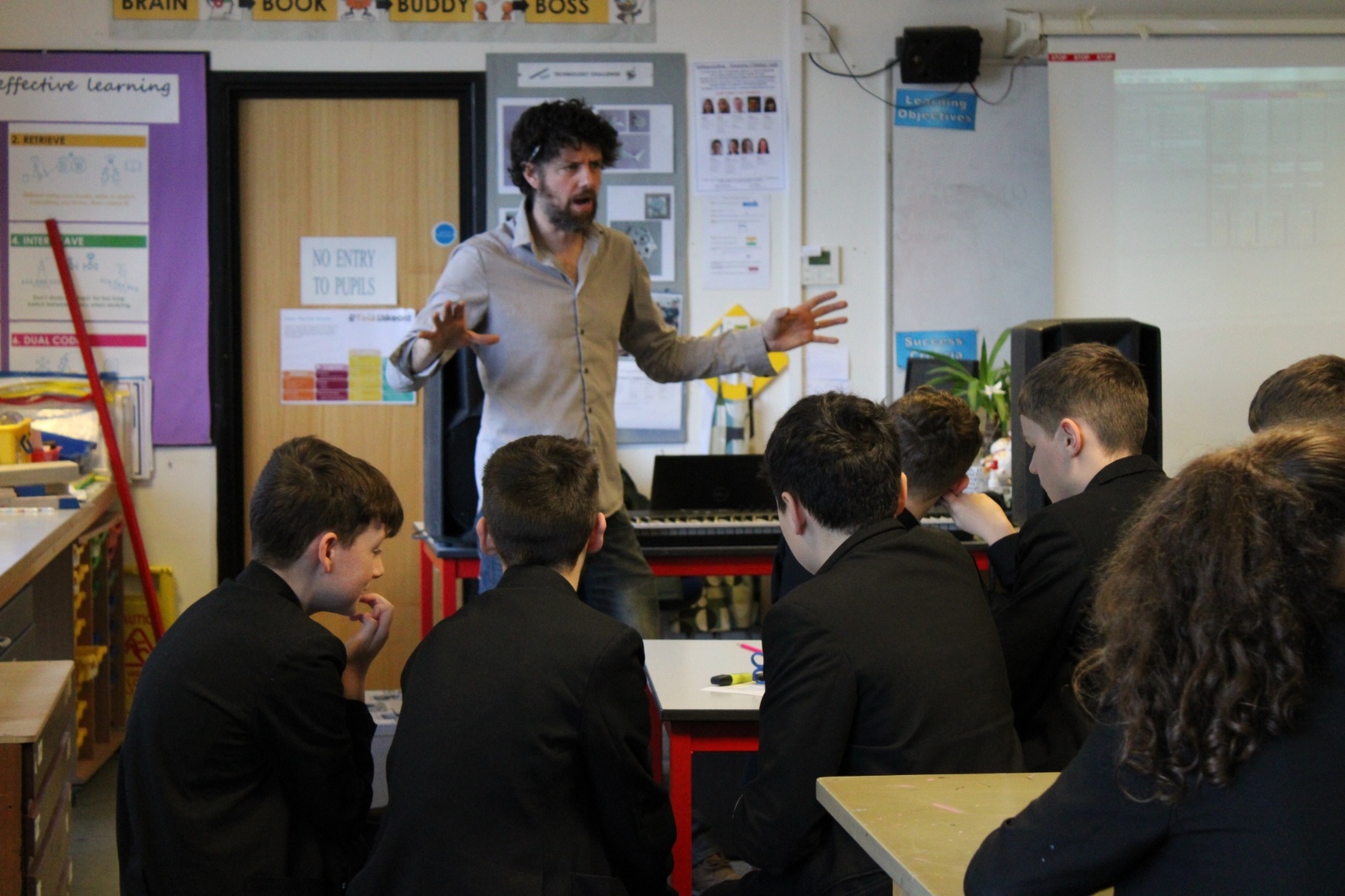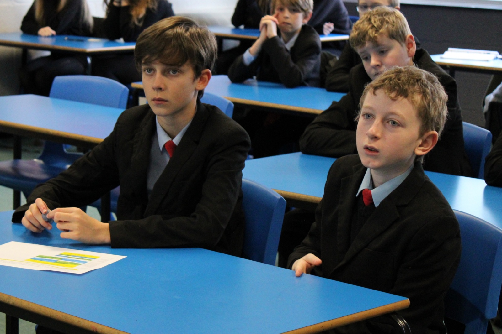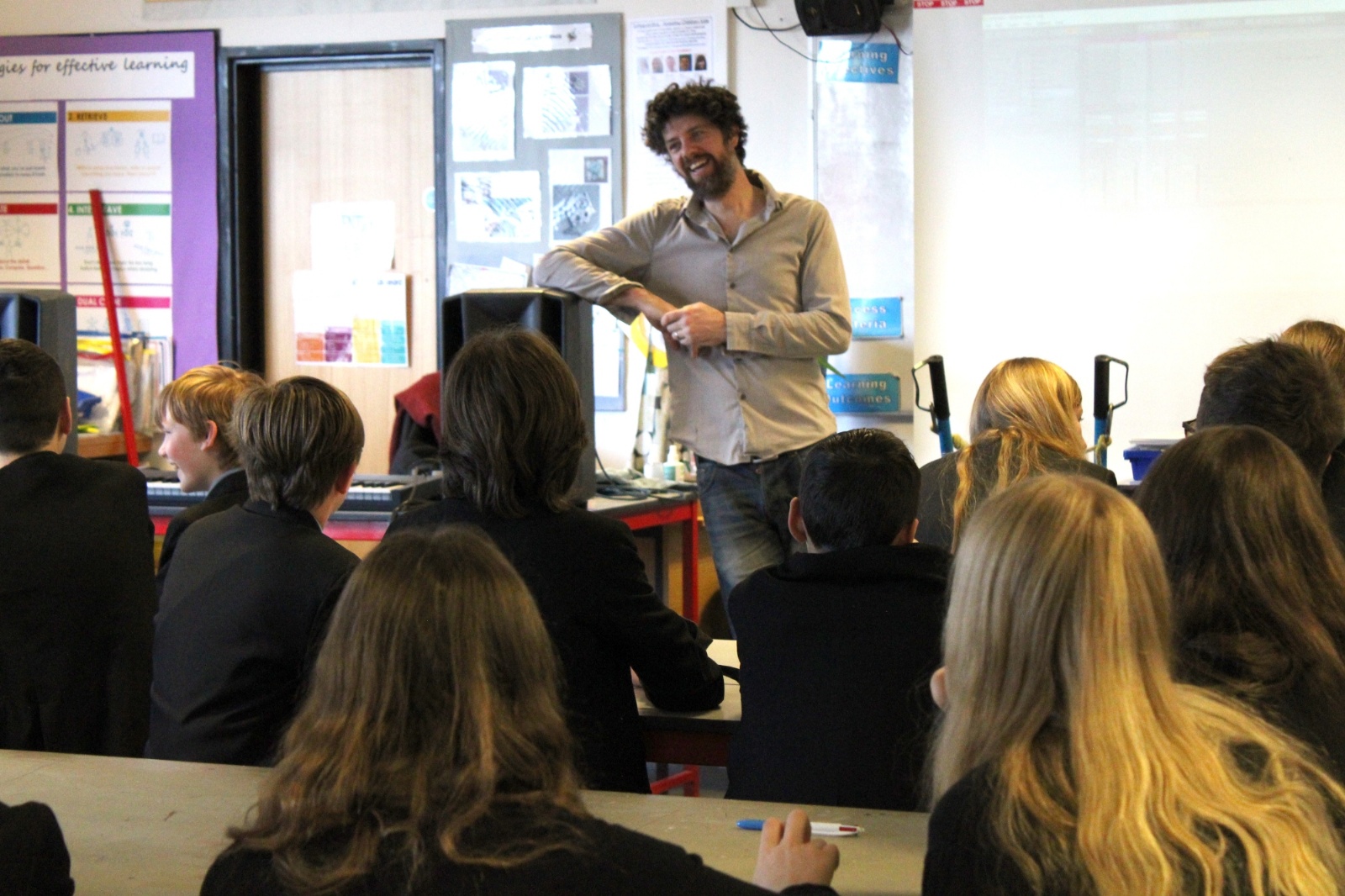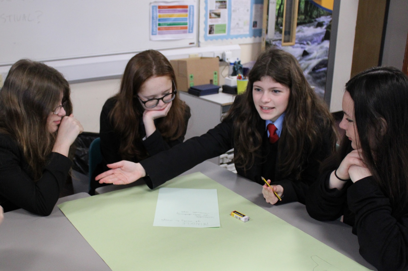 Part of the day was taken up by an enterprise workshop organised by Falmouth University, with the aim to produce designs for an Eco Festival and present their ideas to the class at the end of the session.  Students got into teams and battled against each other in a fierce competition, the final decision as to the winners of the competition was made by the visitors from Falmouth University and Cornwall Council.