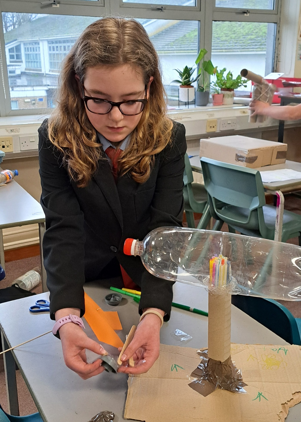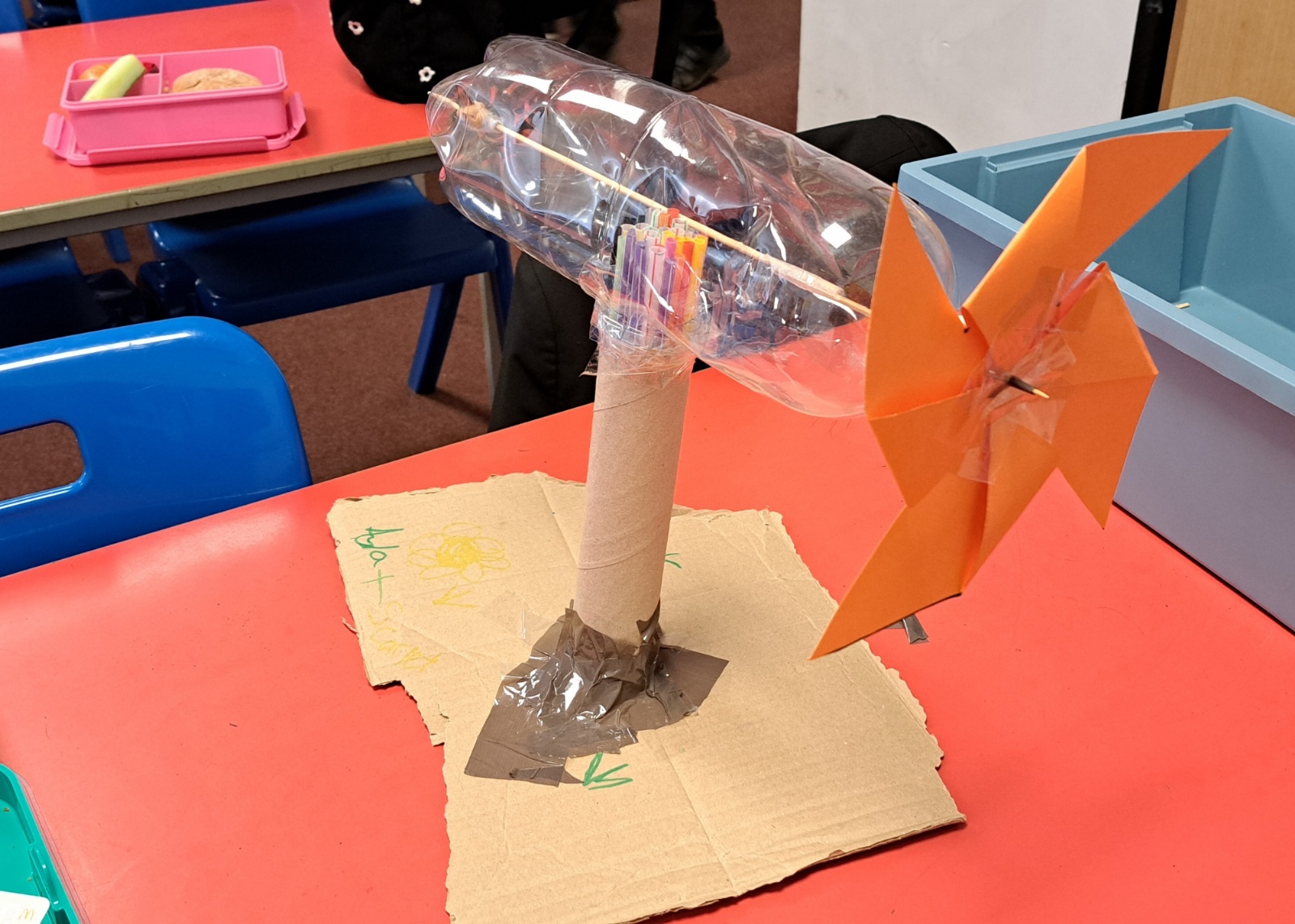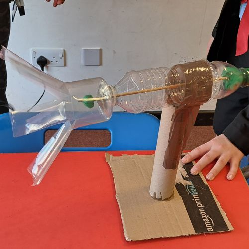 As part of the programme, students were set the challenge of researching, designing, and building their own wind turbines. The project encouraged them to explore renewable energy concepts while developing practical skills in design, construction, and problem-solving.