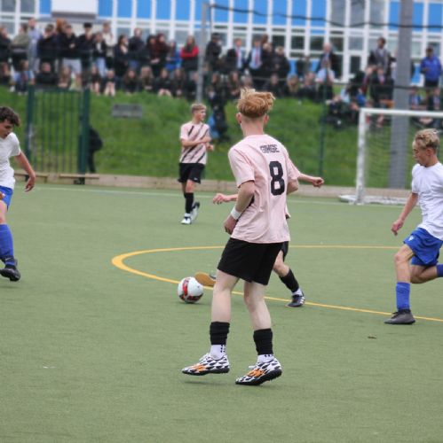 The annual Year 10 vs Year 11 football match, held before half term, was a closely fought competition enjoyed by a large crowd under sunny skies. Both teams showcased impressive skills and determination throughout the game, with end-to-end action and numerous scoring opportunities. Ultimately, the Year 11 team emerged victorious, claiming the win with a final score of 2-0.